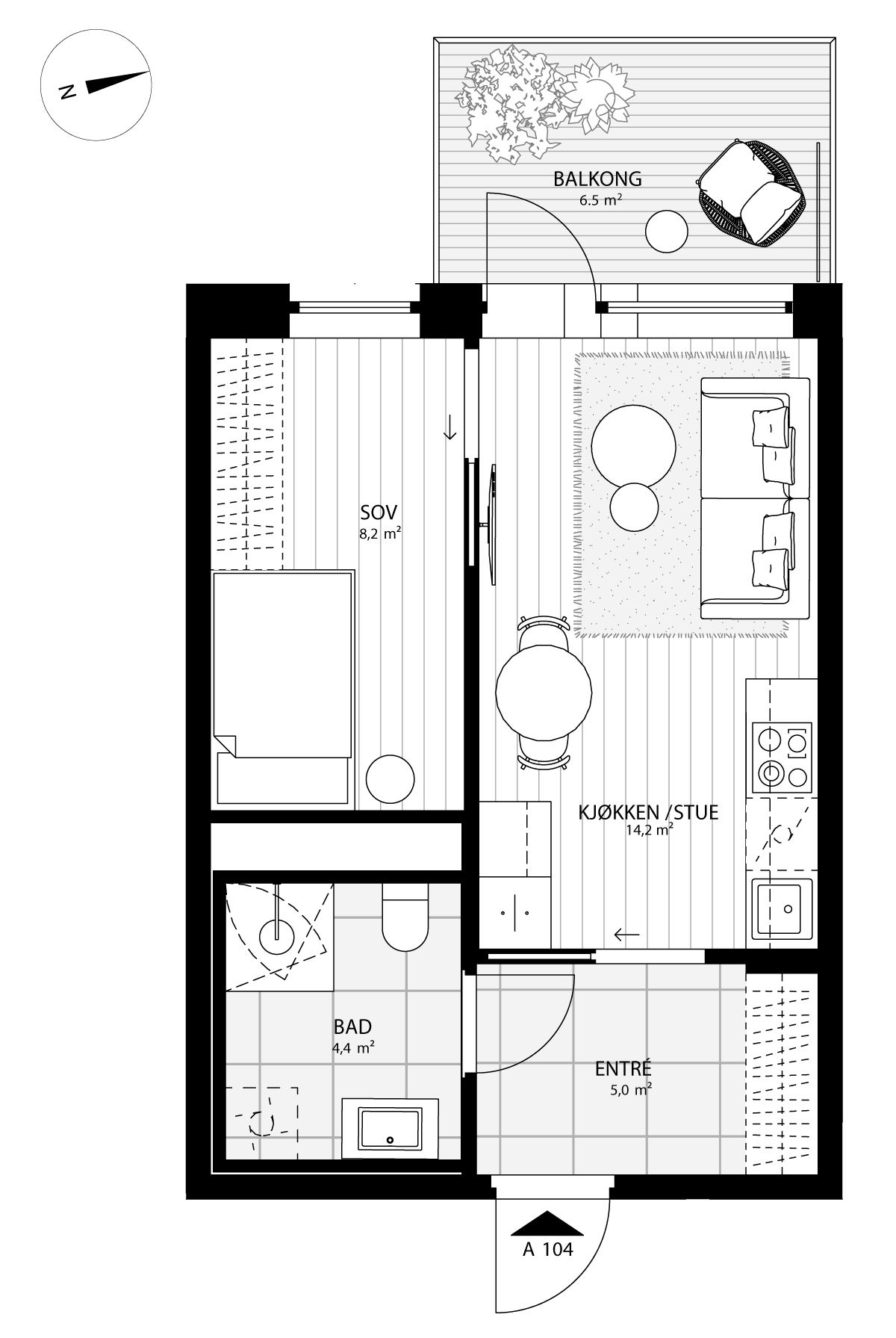 Flott 2-romsleilighet på bakkeplan med utgang til privat vestvendt balkong fra stuen. Romslig entre med gode oppbevaringsmuligheter. Badet er flislagt i delikat gråfarge med varme i gulv. Oppholdsrommet er lyst og romslig med store vindusflater, moderne 1-stavs parkett og vannbåren gulvvarme.