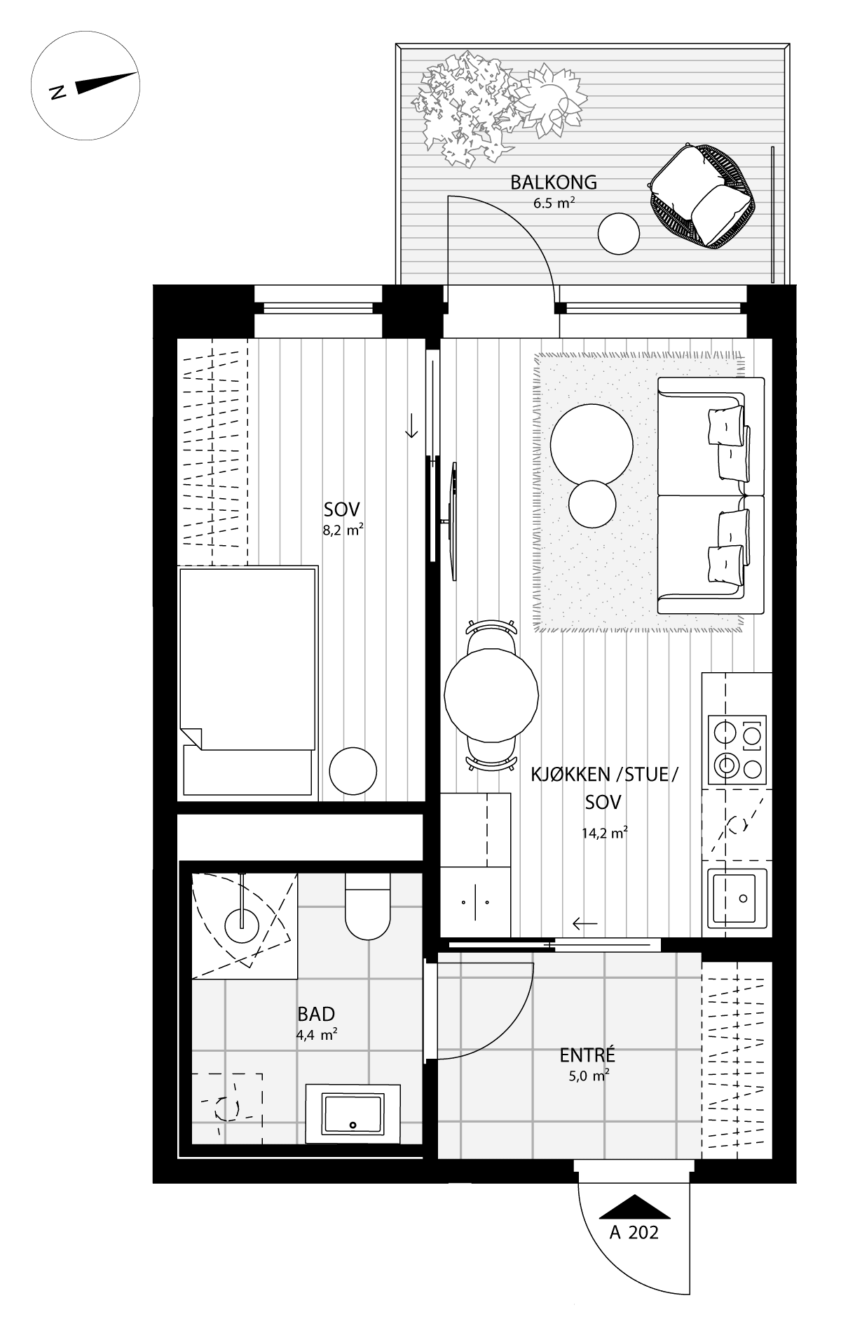 Arealeffektiv 2-romsleilighet med utgang til privat vestvendt balkong fra stuen. Romslig entre med gode oppbevaringsmuligheter. Badet er flislagt i delikat gråfarge med varme i gulv. Oppholdsrommet er lyst og romslig med store vindusflater, moderne 1-stavs parkett og vannbåren gulvvarme.